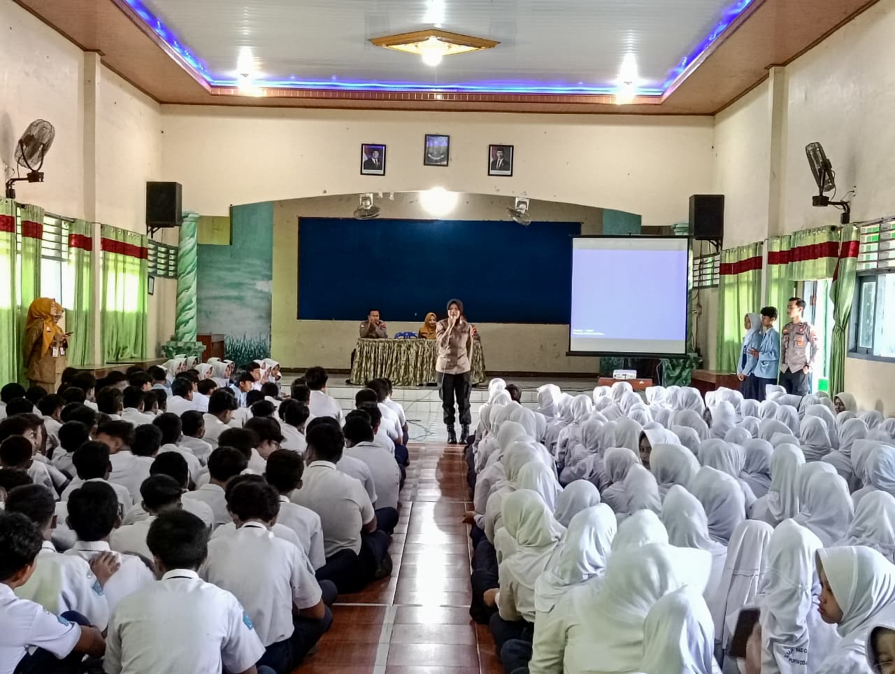 Pada Senin, 9 Maret 2026, siswa-siswi kelas 8 SMP Negeri 3 Purwodadi mengikuti kegiatan sosialisasi dari jajaran kepolisian Polres Grobogan yang bertempat di aula sekolah SMP Negeri 3 Purwodadi. Kegiatan ini dilaksanakan sebagai upaya memberikan pembinaan kepada para pelajar agar selalu menjaga ketertiban dan perilaku positif, khususnya dalam menjalani aktivitas sehari-hari di sekolah maupun di masyarakat. Para siswa mengikuti kegiatan tersebut dengan tertib dan penuh perhatian terhadap materi yang disampaikan oleh petugas kepolisian.